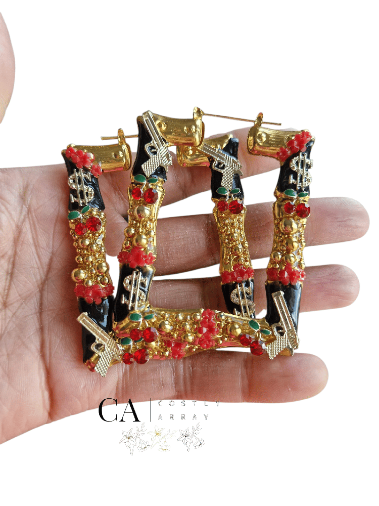 Bamboo earrings with a cherry on top